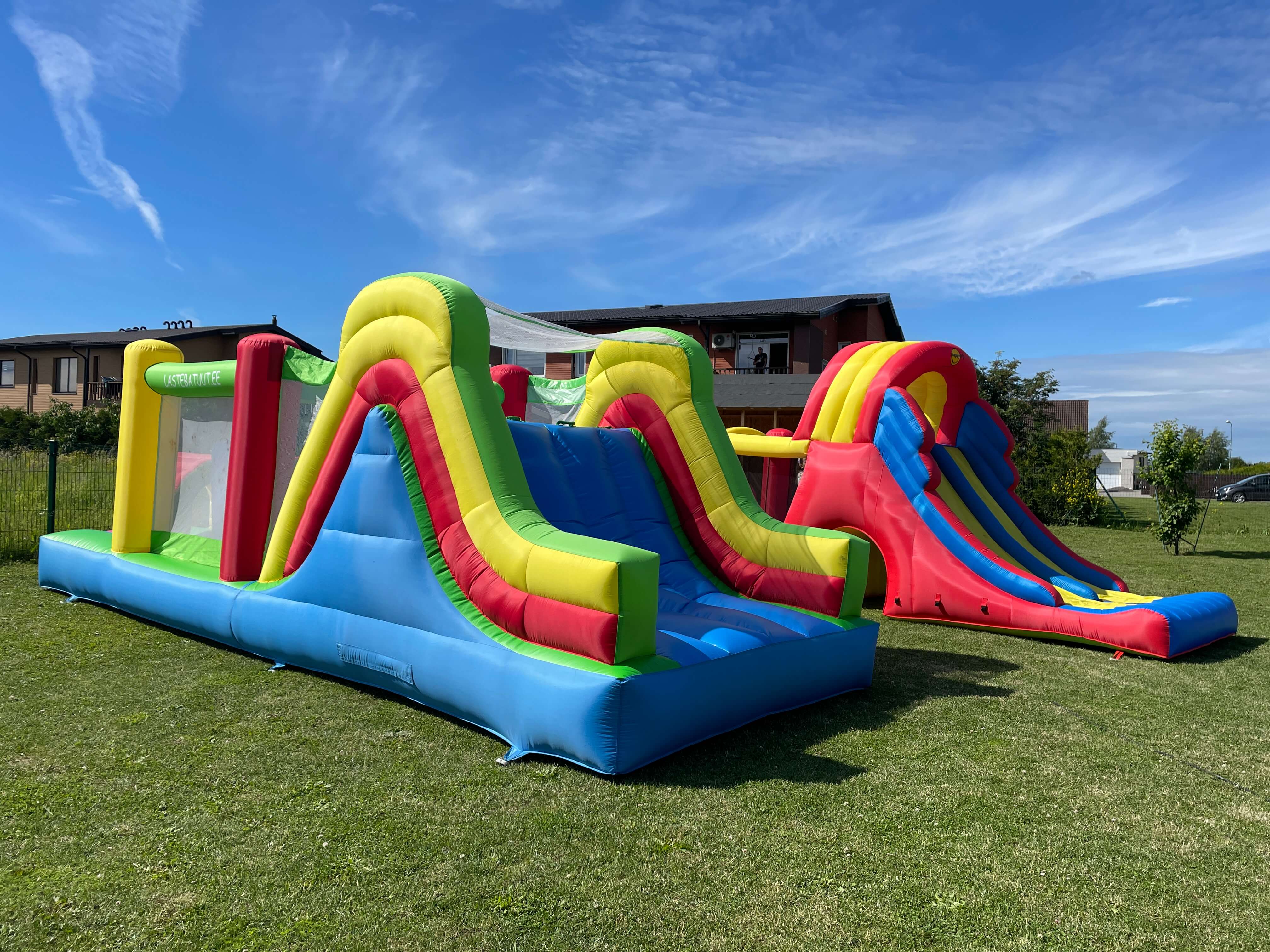 Batuudil on tunnelid (2tk), hüppamise ala, ronimissein, liumäed (2tk) ja täispuhutavad takistused. Batuudi paigaldamiseks on vaja voolu 220V. Batuut täitub õhuga alla minuti ning selle mahavõtmiseks ja kokku pakkimiseks kulub ühel inimesel aega max 10min. Batuut on pakitud silindrikujulisse kotti, mille mõõtmed on ca 70cm (põhja diameeter) x 85cm (kõrgus). Batuut mahub igasse sõiduautosse.